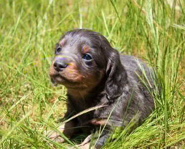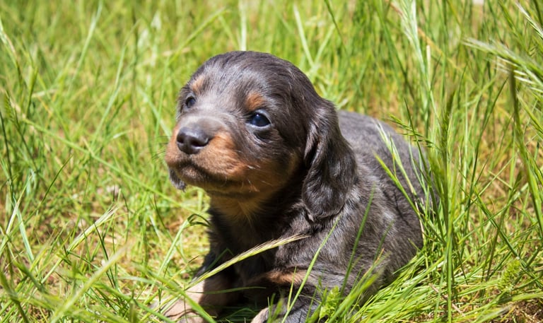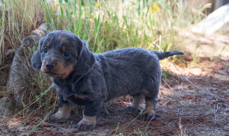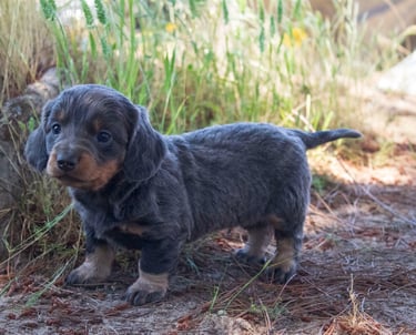 🐾Dachshund – Blue & Tan (Pelo Largo • Miniatura)