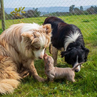 Cachorros criados en ambiente familiar y de campo, con contacto diario con personas, niños y otros perros. Se desarrollan en un entorno con mucha naturaleza, favoreciendo un carácter seguro, sociable y equilibrado.