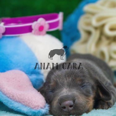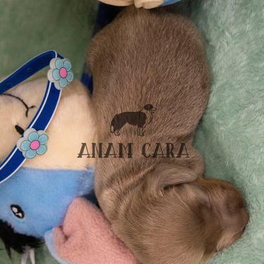 Cachorra criada en ambiente familiar y de campo, con contacto diario con personas y otros perros. Esto favorece un temperamento seguro, sociable y muy cariñoso. Destaca por su hermoso color Blue and Tan, pelaje largo y excelente carácter dulce y equilibrado.